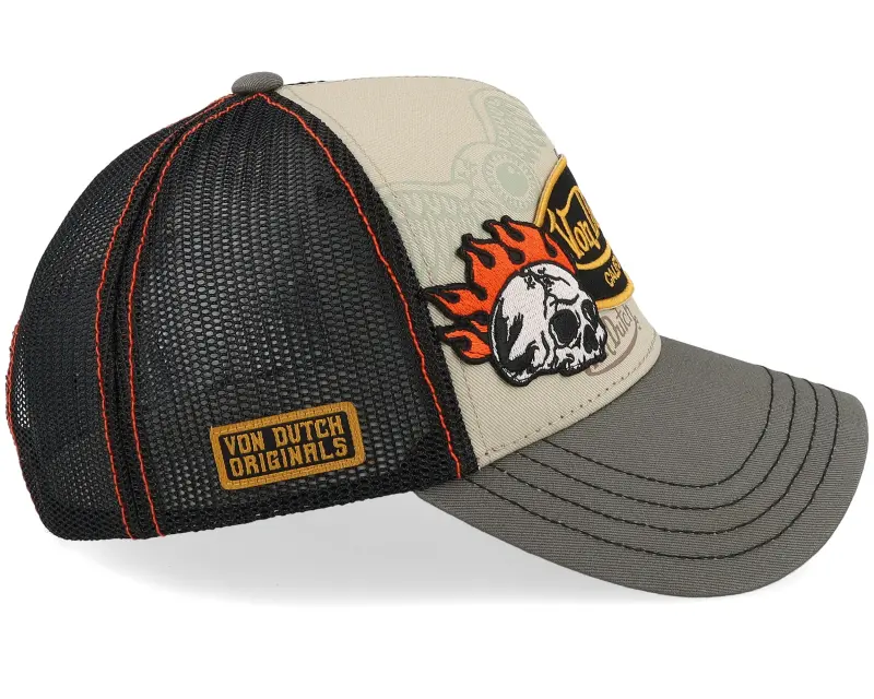 Von Dutch Twill Multi Patches Brown/Black/Creme A-Frame Trucker